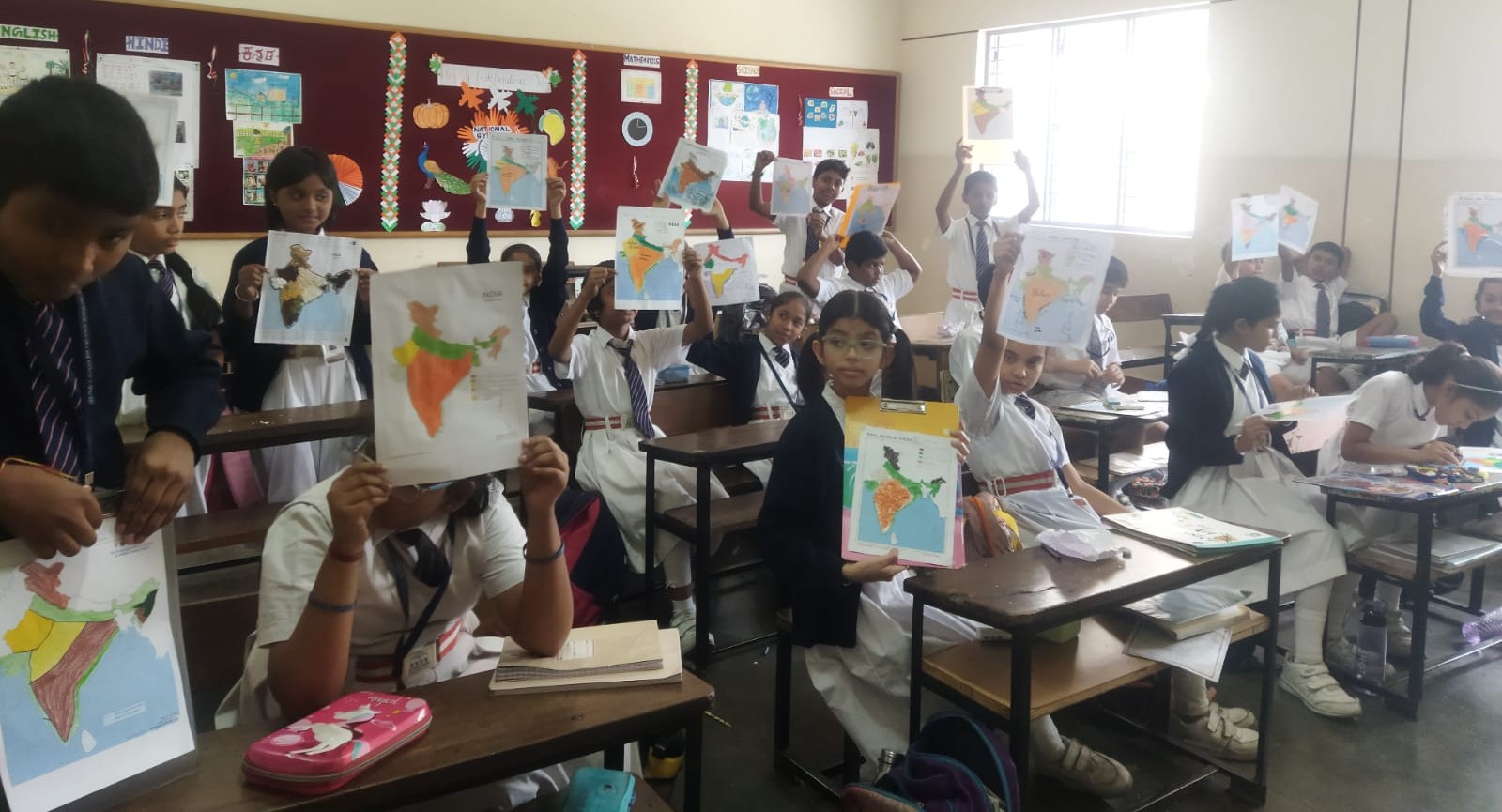 Students from class 3 located the states and their capitals on the map of India which enhanced their memory skills. Class 4 actively took part in locating physical features of India and make it colourful. Class 5 participated in Essay writing on freedom fighters which helped them to learn and implement the values taught by our leaders.